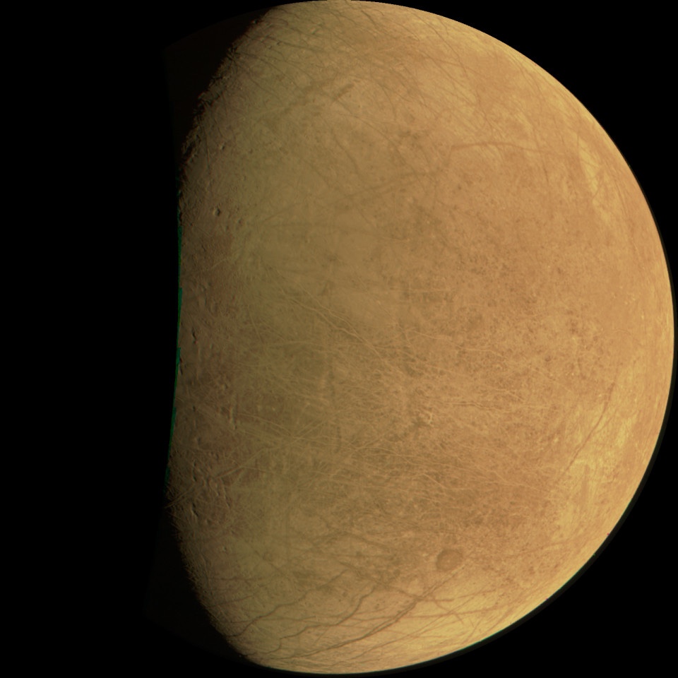 Como la sexta luna más grande del sistema solar, Europa es similar en tamaño a la luna de la Tierra, pero tiene una formación y una historia evolutiva muy diferentes. Europa tiene una enorme corteza helada que recubre un océano que los investigadores creen que puede albergar vida similar a la de la Tierra.